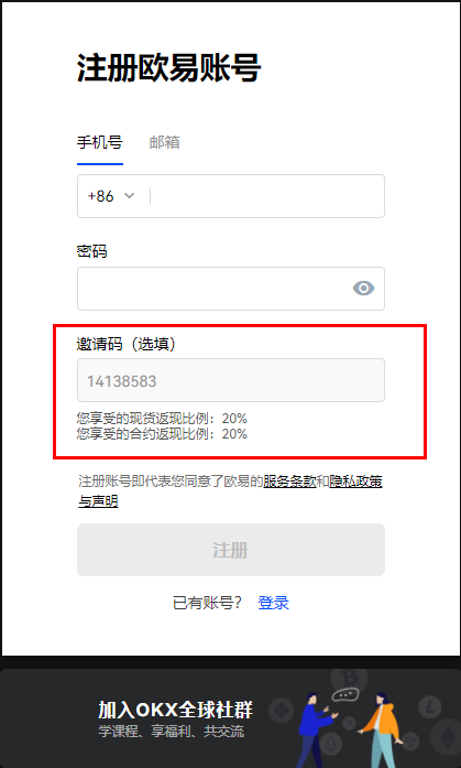 1. 打開平臺OKXAPP,點擊頁面上方登錄/注冊按鈕,進入登錄頁面,點擊右上角注冊,進入注冊頁面。平臺平臺注冊邀請碼14138583 (返現(xiàn)比例20%)JLc菜譜美食網(wǎng)-眾歸云 - 24小時不關(guān)機的云端電腦_云主機_VPS掛機寶_免費掛機寶_0.1元試用,3-5元月租服務器提供