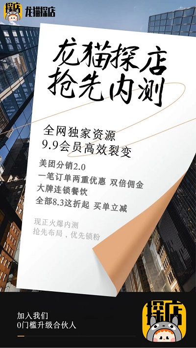 接下來要上線的項目也有很多:1:比如直接公司簽約的大牌88折,例如海底撈!花費1000元,我們直接880元 還有傭金可以拿!不用團購,折扣一步到位!2:比如話費三網(wǎng)通94折,也許市面上有比我們更便宜的,但是我們絕對是最靠譜的!3:比如肯德基、麥當(dāng)勞,9.9抽手機等盲盒系統(tǒng),也是經(jīng)過市場驗證!深受好評!利潤也是非常豐厚可觀的!4:餓了么單店也簽約了,接下來很快就會上線,店鋪會更多,讓所有龍貓人多層收益!