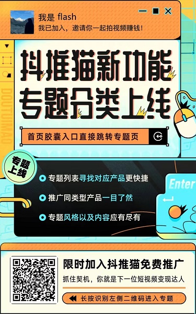 抖推貓新人加入怎么玩?專業(yè)團隊引領(lǐng)啟航。一直都有留意,現(xiàn)在間斷會有人來咨詢什么是抖推貓,說明抖推貓按照目前來說還是有一定的熱度的,也不知道是不是因為,現(xiàn)在的主流量,還是以短視頻為主,所以大部分用戶的注意力花在哪里,哪里就有掙米的機會,嵌入到短視頻廣告,除了帶貨,也有另一種是像小程序這樣模式,用視頻的曝光率和用戶的點擊廣告率來獲得收益,對于用戶來說,是沒有損失財物,對于視頻創(chuàng)作者來說,用心做好視頻就可能獲得收益。