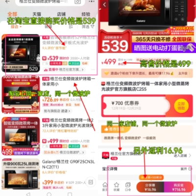 如果你們想在網(wǎng)上購(gòu)買(mǎi)微波爐的話(huà),建議你們?cè)趹?yīng)用商店下個(gè)高省APP,通過(guò)高省領(lǐng)取大額優(yōu)惠券在加上返利,會(huì)讓你們省很多錢(qián)的!例如:我們購(gòu)買(mǎi)個(gè)微波爐,選擇格蘭仕微波爐吧!同一家店鋪,同一個(gè)商品的對(duì)比!