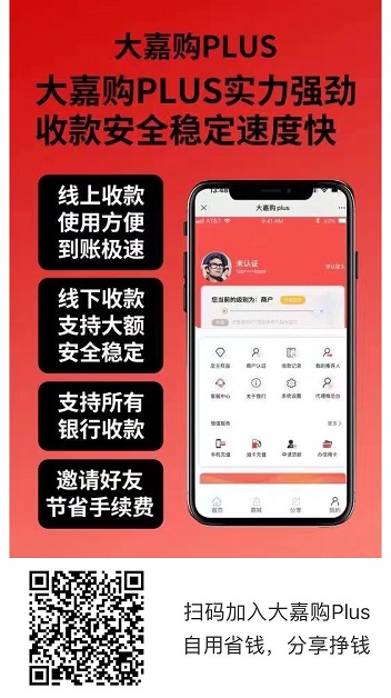 大嘉購plus,它是一款智能手機(jī)收款A(yù)PP,主要功能有快捷收款、刷臉收款、銀聯(lián)二維碼收款等,結(jié)合線上線下數(shù)據(jù),隨時隨地收款,是專為用戶打造的一站式綜合支付服務(wù)平臺。