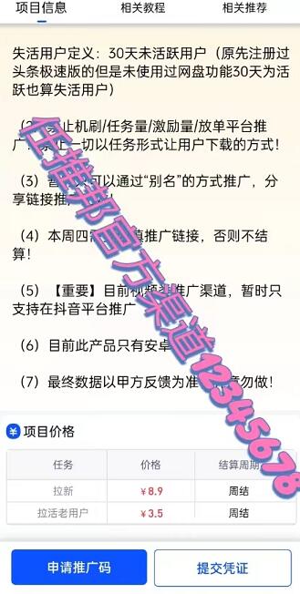 我們進(jìn)入平臺首頁,就可以看到頭條網(wǎng)盤和夸克網(wǎng)盤的置頂項(xiàng)目,根據(jù)任務(wù)具體要求我們申請報備,通過之后就可以開始推廣,后續(xù)每周都在任推邦進(jìn)行結(jié)算。tiF菜譜美食網(wǎng)-眾歸云 - 24小時不關(guān)機(jī)的云端電腦_云主機(jī)_VPS掛機(jī)寶_免費(fèi)掛機(jī)寶_0.1元試用,3-5元月租服務(wù)器提供