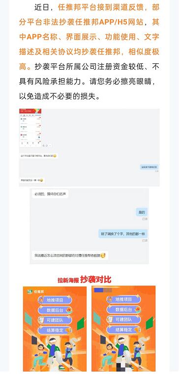 當(dāng)然說實話,從這點可以看出來,任推邦平臺確實本身做得很好,無論是口碑還是人氣,所以才會有不法分子前來山寨。