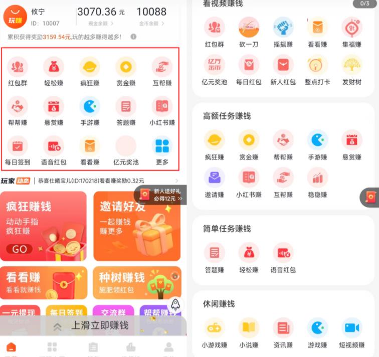 首頁掙米的模塊,框起來的地方是玩賺掙米的入口,從這里點(diǎn)擊進(jìn)去,每個(gè)板塊都可以掙米,點(diǎn)擊更多可以查看更多的分類。分類內(nèi)分為四大板塊:看視頻掙米、高額任務(wù)掙米、簡單任務(wù)掙米、休閑掙米。qIU菜譜美食網(wǎng)-眾歸云 - 24小時(shí)不關(guān)機(jī)的云端電腦_云主機(jī)_VPS掛機(jī)寶_免費(fèi)掛機(jī)寶_0.1元試用,3-5元月租服務(wù)器提供