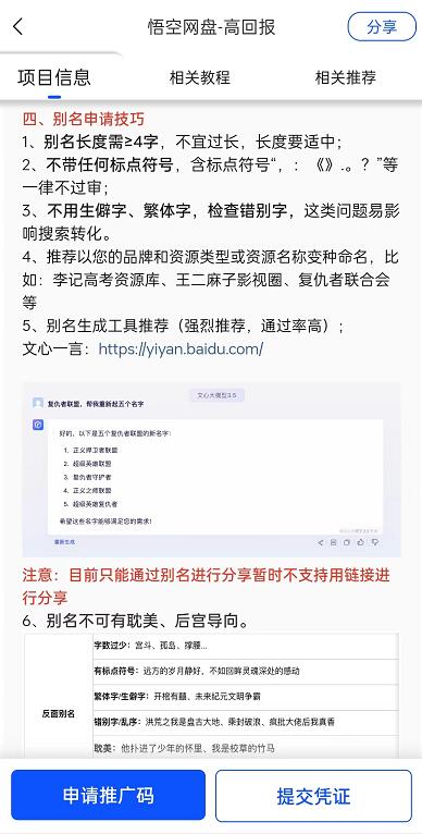 不過注冊申請推廣碼,其實就是申請推廣的權(quán)限,并不會單獨給我們生成指定的推廣碼,而是根據(jù)別名模式進行推廣,有點類似夸克網(wǎng)盤的中文口令,但是夸克的口令是自動生成隨機亂碼,而悟空網(wǎng)盤口令是自定義的利于轉(zhuǎn)化,但是需要每次單獨申請,我們可以申請多個別名,甚至一個文件夾都可以有多個別名,別名通過了之后對應(yīng)的文件/文件夾就可以進行推廣了,建議使用文件夾來申請這樣后期可以往里面增加或調(diào)整內(nèi)容,提高留存率和數(shù)據(jù)!MTw菜譜美食網(wǎng)-眾歸云 - 24小時不關(guān)機的云端電腦_云主機_VPS掛機寶_免費掛機寶_0.1元試用,3-5元月租服務(wù)器提供