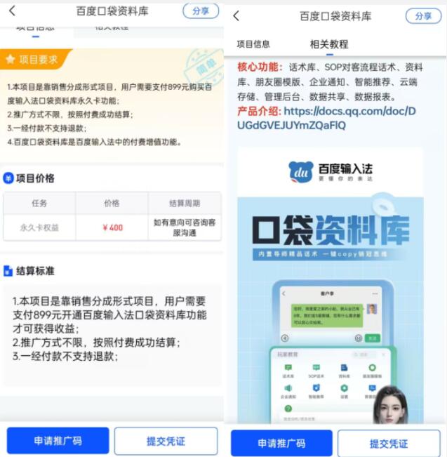 這個項目并非在百度輸入法或者百度APP上面進行直接推廣銷售操作,我們需要對接百度輸入法口袋資料庫銷售項目的第三方服務(wù)商渠道【任推邦】,任推邦公司邀請碼12345678掃碼注冊下載,才能成功公司的一級代理享受最高價格!