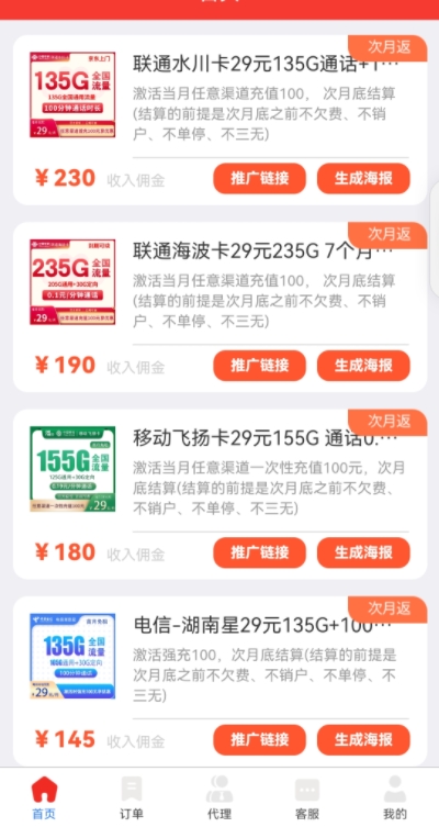 2. **高額傭金,盈利豐厚**:作為一級(jí)代理,推廣一張流量卡即可獲得100至300元不等的傭金,遠(yuǎn)高于一般CPS項(xiàng)目。如此高的回報(bào)率,使得即使少量的銷售也能迅速積累可觀收益,非常適合學(xué)生兼職或?qū)で蟾睒I(yè)創(chuàng)收的人群。