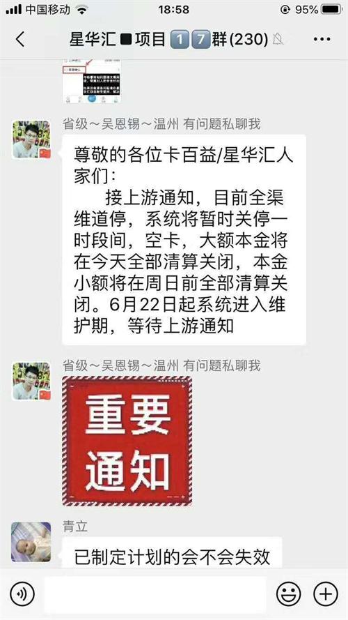 近日,星華匯(卡百益)App也無法提交環(huán)上款計劃了。根據(jù)星華匯公司客服回復(fù),現(xiàn)在星華匯app暫時維護(hù),無法提交新的環(huán)上款計劃。星華匯何時能夠恢復(fù)提交環(huán)上款計劃,公司社區(qū)以解散,各大星華匯(卡百益)代理以平移對接,種種跡象表明星華匯估計離倒閉也不遠(yuǎn)了。R47菜譜美食網(wǎng)-眾歸云 - 24小時不關(guān)機的云端電腦_云主機_VPS掛機寶_免費掛機寶_0.1元試用,3-5元月租服務(wù)器提供