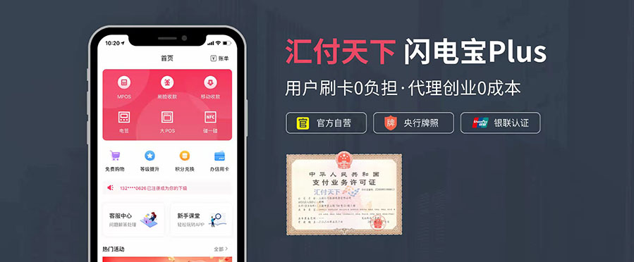 閃電寶plus是上海匯付數(shù)據(jù)服務(wù)有限公司旗下的一個聚合支付產(chǎn)品,包含移動支付,刷臉支付,手機POS,mpos,電簽pos機,大pos,收款碼牌,小額支付等的一個APP,收款收款無需硬件,只需要閃電寶PlusAPP軟件+手機,就可以收款收款,使用很方便,收款手續(xù)費低,而且還是有正規(guī)支付牌照的平臺更安全更靠譜。