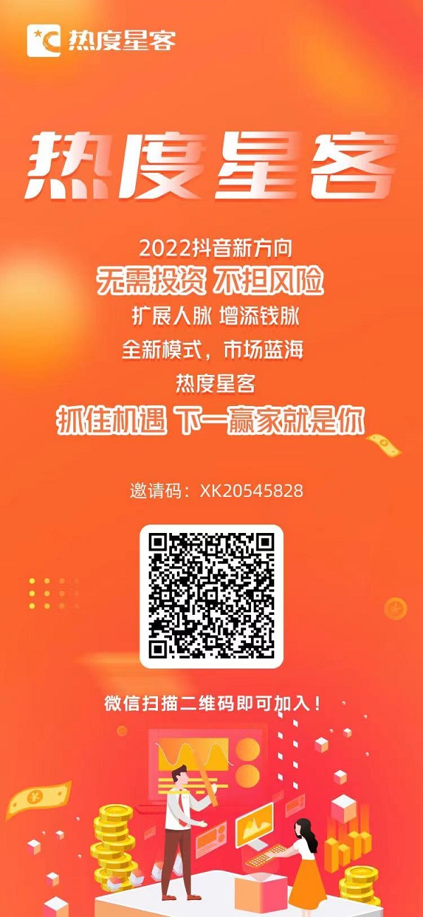 正在閱讀此篇文章幸運的你,想增加0投資沒有任何風(fēng)險的副業(yè),那么今天這個熱度星客一定適合你,熱度星客抖音購物省錢平臺項目對接高志遠(yuǎn)18452754431(微信電話同號,備注來意快速通過),熱度星客邀請碼填寫:XK20545828