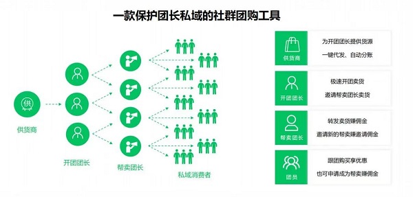 團(tuán)團(tuán)團(tuán)和快團(tuán)團(tuán)的核心區(qū)別在于團(tuán)團(tuán)團(tuán)的推薦關(guān)系與幫賣團(tuán)長(zhǎng)的綁定是永久的,而快團(tuán)團(tuán)只是綁定某個(gè)開(kāi)團(tuán)團(tuán)長(zhǎng)并可能解除這種關(guān)系。團(tuán)團(tuán)團(tuán)的推薦關(guān)系是綁定整個(gè)團(tuán)團(tuán)團(tuán)體系,如果邀請(qǐng)了10000個(gè)私域用戶進(jìn)入團(tuán)團(tuán)團(tuán),無(wú)論是幫賣哪個(gè)團(tuán)長(zhǎng)還是購(gòu)物,都能獲得推薦傭金。作為開(kāi)團(tuán)團(tuán)長(zhǎng),幫賣他們可以出銷量,賺取產(chǎn)品價(jià)差,通??赡玫郊s10%的傭金。總之,團(tuán)團(tuán)團(tuán)是一個(gè)更加完善且長(zhǎng)期可持續(xù)的掙米機(jī)制。jPr菜譜美食網(wǎng)-眾歸云 - 24小時(shí)不關(guān)機(jī)的云端電腦_云主機(jī)_VPS掛機(jī)寶_免費(fèi)掛機(jī)寶_0.1元試用,3-5元月租服務(wù)器提供