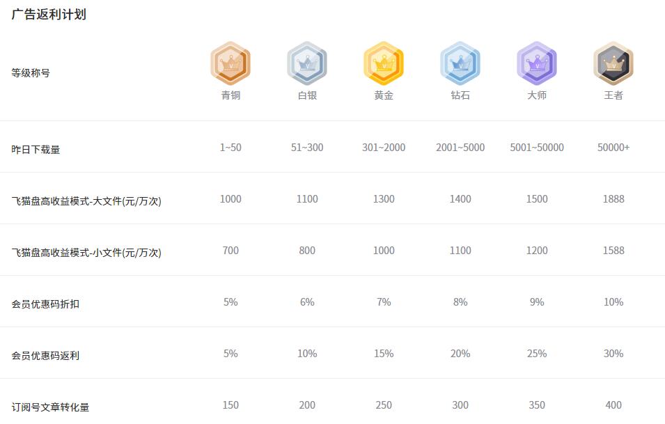 飛貓盤目前收益主要有下載點(diǎn)擊收益、會(huì)員開(kāi)通收益、以及訂閱號(hào)收益;點(diǎn)擊下載收益是最為主要的,簡(jiǎn)單說(shuō)只要有人點(diǎn)擊下載軟件我們就有收益,根據(jù)我們昨日推廣下載數(shù)據(jù),當(dāng)天就屬于青銅到王者之間的級(jí)別有不同的單價(jià),每1萬(wàn)次下載傭金為1000-1888元,而且周三跟周四翻倍,就是說(shuō)一次下載最高有2-4毛的獎(jiǎng)勵(lì)。bj7菜譜美食網(wǎng)-眾歸云 - 24小時(shí)不關(guān)機(jī)的云端電腦_云主機(jī)_VPS掛機(jī)寶_免費(fèi)掛機(jī)寶_0.1元試用,3-5元月租服務(wù)器提供