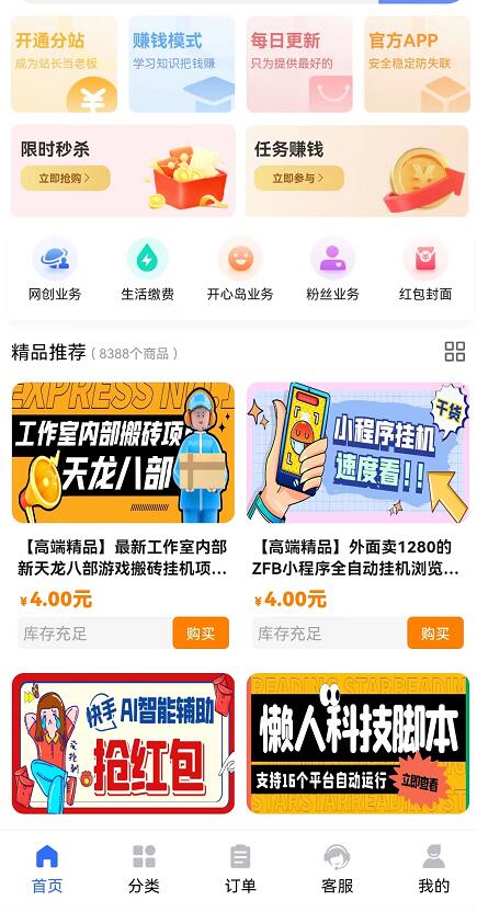 實(shí)際上,就是一個(gè)可以自定義網(wǎng)站名字的知識(shí)付費(fèi)虛擬資源站項(xiàng)目,只要你成為了合伙人就可以自定義軟件名字和APP,所以嚴(yán)格意義上來(lái)說(shuō)總站并不存在,只要你注冊(cè)然后成為合伙人就有獨(dú)立網(wǎng)站和APP,也就是總站了,有興趣可以參考下文入口,這邊合伙人站長(zhǎng)價(jià)格已經(jīng)設(shè)置對(duì)低了,比起外面動(dòng)則幾百塊的割韭菜要?jiǎng)澦阍S多!9w8菜譜美食網(wǎng)-眾歸云 - 24小時(shí)不關(guān)機(jī)的云端電腦_云主機(jī)_VPS掛機(jī)寶_免費(fèi)掛機(jī)寶_0.1元試用,3-5元月租服務(wù)器提供