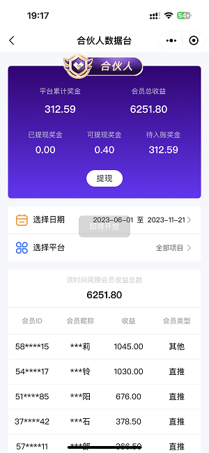 上一次發(fā)的時間是2023年7月25日,現(xiàn)在是2023年11月21日,到今天一峰的團隊人數(shù)從149人到現(xiàn)在的2385人,在我推廣碼下面的已經(jīng)也有突破一千收益的人,繼續(xù)加油吧。oOa菜譜美食網(wǎng)-眾歸云 - 24小時不關(guān)機的云端電腦_云主機_VPS掛機寶_免費掛機寶_0.1元試用,3-5元月租服務(wù)器提供