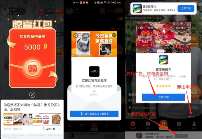 這個時候重點來了,我們找到任意地方的廣告,不同的人可能獲得的廣告不同,看一下是什么內(nèi)容的廣告,如果和下圖是一樣的直播廣告或者游戲廣告的話,那么我們直接點擊廣告即可MMk菜譜美食網(wǎng)-眾歸云 - 24小時不關機的云端電腦_云主機_VPS掛機寶_免費掛機寶_0.1元試用,3-5元月租服務器提供