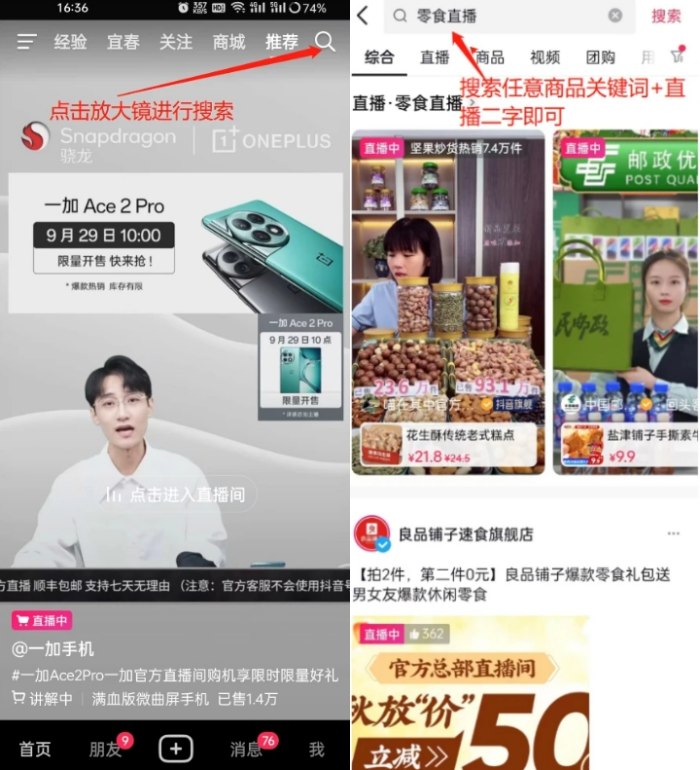 打開抖音,點擊右上角的放大鏡進行搜索,搜索任意商品關鍵詞+直播,然后在綜合里面往下滑找到帶有廣告二字的直播間,點擊進入去按照上面教的直播方法去做即可;MMk菜譜美食網(wǎng)-眾歸云 - 24小時不關機的云端電腦_云主機_VPS掛機寶_免費掛機寶_0.1元試用,3-5元月租服務器提供