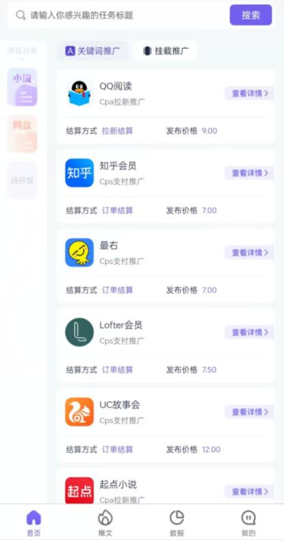 要操作聚推君平臺(tái),我們注冊(cè)打開(kāi)軟件之后,首先通過(guò)首頁(yè)的欄目可以看一下【小說(shuō)】【網(wǎng)盤(pán)】【短劇】這幾個(gè)類(lèi)型的業(yè)務(wù),里面具體有不同的實(shí)操任務(wù)如【QQ閱讀】【最右】【起點(diǎn)小說(shuō)】【迅雷網(wǎng)盤(pán)】【UC網(wǎng)盤(pán)】等等。OFA菜譜美食網(wǎng)-眾歸云 - 24小時(shí)不關(guān)機(jī)的云端電腦_云主機(jī)_VPS掛機(jī)寶_免費(fèi)掛機(jī)寶_0.1元試用,3-5元月租服務(wù)器提供