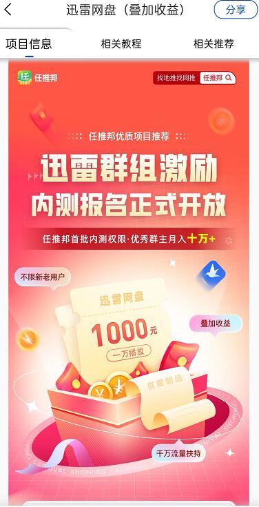 迅雷網(wǎng)盤推廣群組轉(zhuǎn)存&播放收益怎么申請(qǐng)?迅雷網(wǎng)盤拉新群組轉(zhuǎn)播一天能賺多少錢?所謂迅雷網(wǎng)盤群組轉(zhuǎn)播掙米,就是轉(zhuǎn)存&播放的意思,這是近期迅雷網(wǎng)盤推廣活動(dòng)新增的一個(gè)非常給力的收益板塊,一個(gè)1000人的群組理論上就能貢獻(xiàn)最高每天600元的轉(zhuǎn)播(還不算其他推廣利潤),所以小編也是認(rèn)為目前的迅雷網(wǎng)盤屬于是被嚴(yán)重低估的優(yōu)質(zhì)網(wǎng)盤CPA拉新項(xiàng)目!(原創(chuàng)內(nèi)容抄襲必究)fv6菜譜美食網(wǎng)-眾歸云 - 24小時(shí)不關(guān)機(jī)的云端電腦_云主機(jī)_VPS掛機(jī)寶_免費(fèi)掛機(jī)寶_0.1元試用,3-5元月租服務(wù)器提供