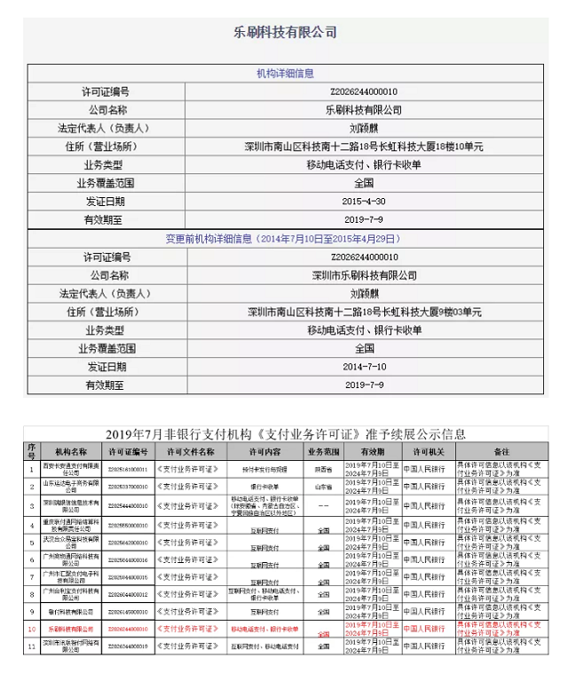 樂刷2019年剛完成續(xù)展