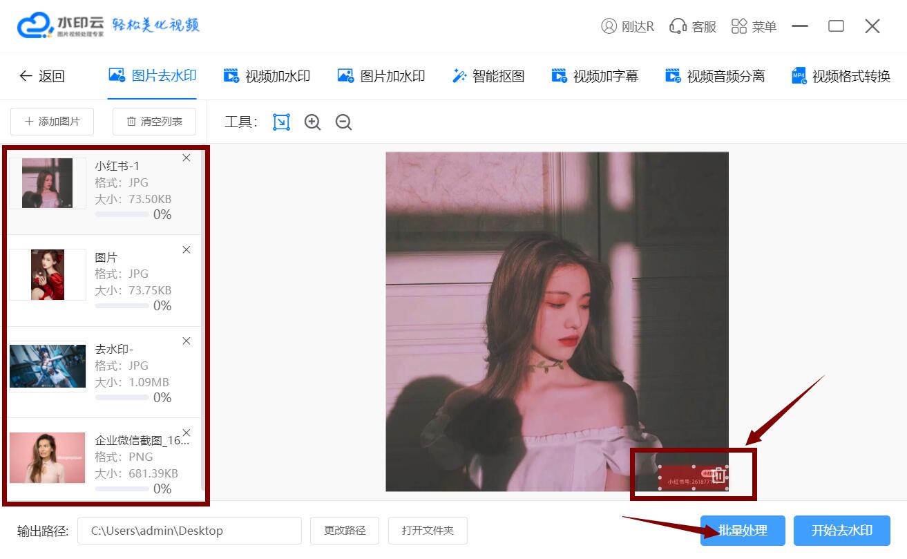步驟3,框選完成后,點(diǎn)擊“開始去水印”,等待處理,完成后會有提示框顯示處理完成,會默認(rèn)保存到電腦桌面。W2k菜譜美食網(wǎng)-眾歸云 - 24小時不關(guān)機(jī)的云端電腦_云主機(jī)_VPS掛機(jī)寶_免費(fèi)掛機(jī)寶_0.1元試用,3-5元月租服務(wù)器提供